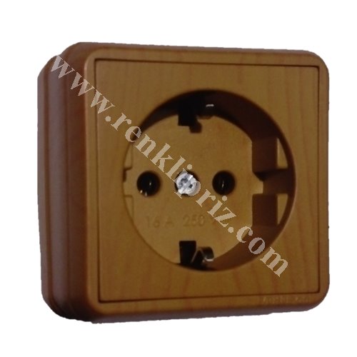 Mutlusan Sıva Üstü Meşe Renk Topraklı Priz