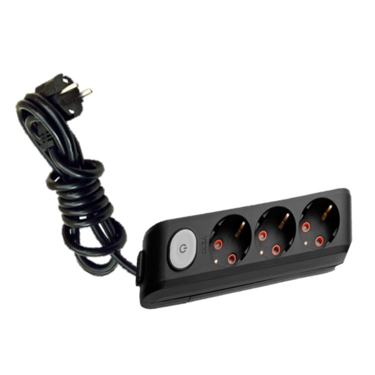 VİKO SİYAH ÜÇLÜ ANAHTARLI 3 METRE KABLOLU GRUP PRİZ